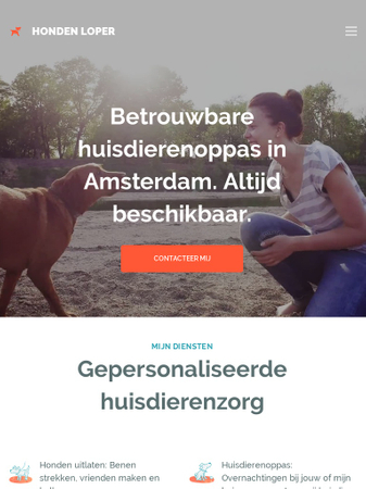 Laat dit leuke ontwerp je nieuwe klanten helpen aantrekken voor je hondenuitlaat- of huisdierenverzorging service. Maak het beste van de websitestructuur die we hebben voorbereid en geef je website een mooie finishing touch door een interessante video van je huisdier toe te voegen aan de koptekst van je startpagina.