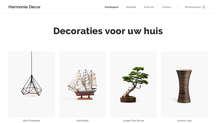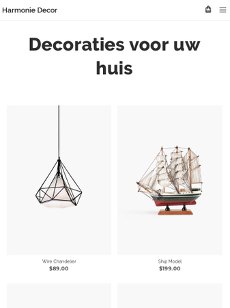 Wil je je handgemaakte huisdecoraties online verkopen? Open een succesvolle online winkel met dit prachtige sjabloon. De porductgalerij op de startpagina is de perfecte plek om je unieke producten te presenteren en de klanten te verleiden om ze allemaal te bestellen voor hun gezellige huizen. Je kan alles instellen in slechts enkele klikken.