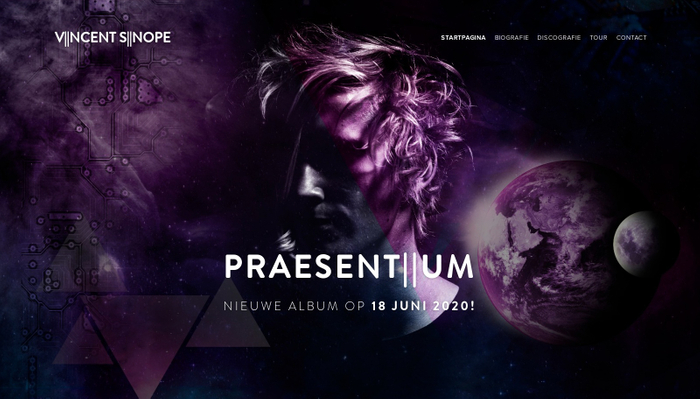 Dit ontwerp gemaakt voor DJ's, producenten, zangers en andere kunstenaars zal je website in de menigte laten opvallen. Vergeet niet om je video's, foto's en concertdata toe te voegen.