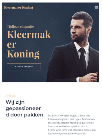 Laat dit elegante sjabloon je verbazen. Perfect voor alle kleermakerswinkels, het is ontworpen om je klanten op het eerste gezicht verliefd te laten worden op je producten. Creëer de pefecte online winkel voor kostuums en vergeet niet om de geschiedenis van jouw bedrijf te delen.