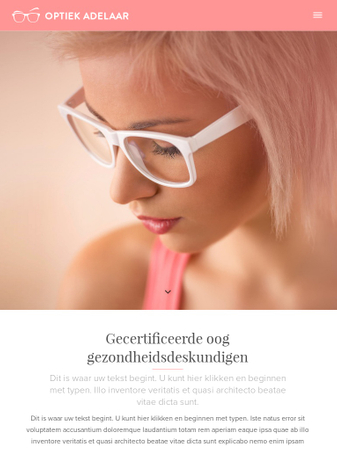 Deze zachte pastel sjabloon is geweldig voor opticiens, juweliers of modeboetieks. Je logo wil opvallen in het menu aan de linkerkant, waarmee je ook een aantal pagina's kan toevoegen aan je website.