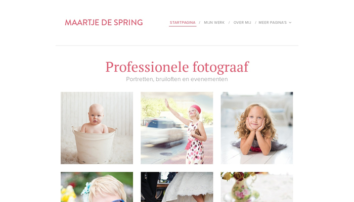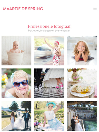 Het perfecte sjabloon voor bruiloft, portret- en productfotografen. Trek nieuwe klanten aan met je prachtige portfolio direct op de startpagina.