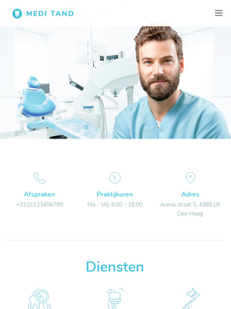 Professioneel ontwerp voor tandartsen, tandheelkundigen en andere medische deskundigen. Dit sjabloon zal je huidige en toekomstige patiënten alle relevante informatie over jouw praktijk tonen. Je kan eenvoudig jouw contactgegevens en belangrijk nieuws direct op de startpagina delen en gebruik maken van onze uitgebreide icoon galerij om je website nog interactiever te maken.