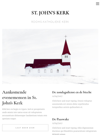 Kies deze adembenemende sjabloon om een aantrekkelijke website voor jouw kerk of religieuze organisatie te creëren. De eenvoudige en heldere opmaak maakt het sjabloon visueel aantrekkelijk en nuttig voor zowel de leden van jouw congregatie als voor nieuwe bezoekers. Alle kerntaken zoals het dienstenrooster, de actuele kalender van kerkevenementen, een korte geschiedenis van jouw kerk en contactgegevens zijn makkelijk toegankelijk.