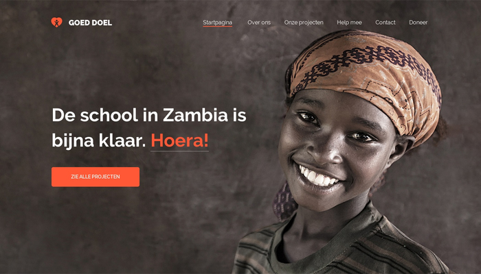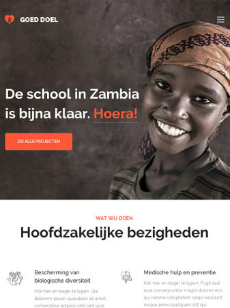 Dit bruisende sjabloon voor liefdadigheidsorganisaties zal zeker helpen om vrijwilligers en donaties aan te trekken. Toon gewoon bezoekers hoe en waar ze kunnen helpen. Benadruk jouw succesvolle campagnes. Beschrijf je missie. Krijg mensen online betrokken met een opvallende website en maak een verschil in de wereld.