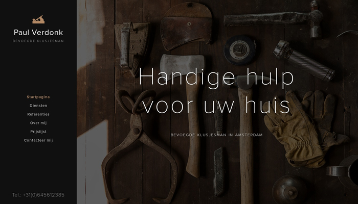 Alle ervaren klussers kunnen hun diensten met behulp van deze sjabloon aanbieden. Beschrijf je ervaring, maak een lijst van de diensten die je aanbiedt en vergeet niet iets over jezelf te schrijven. Een goed geregelde prijslijst en contactpagina zal je klanten laten zien dat je de beste keus bent.
